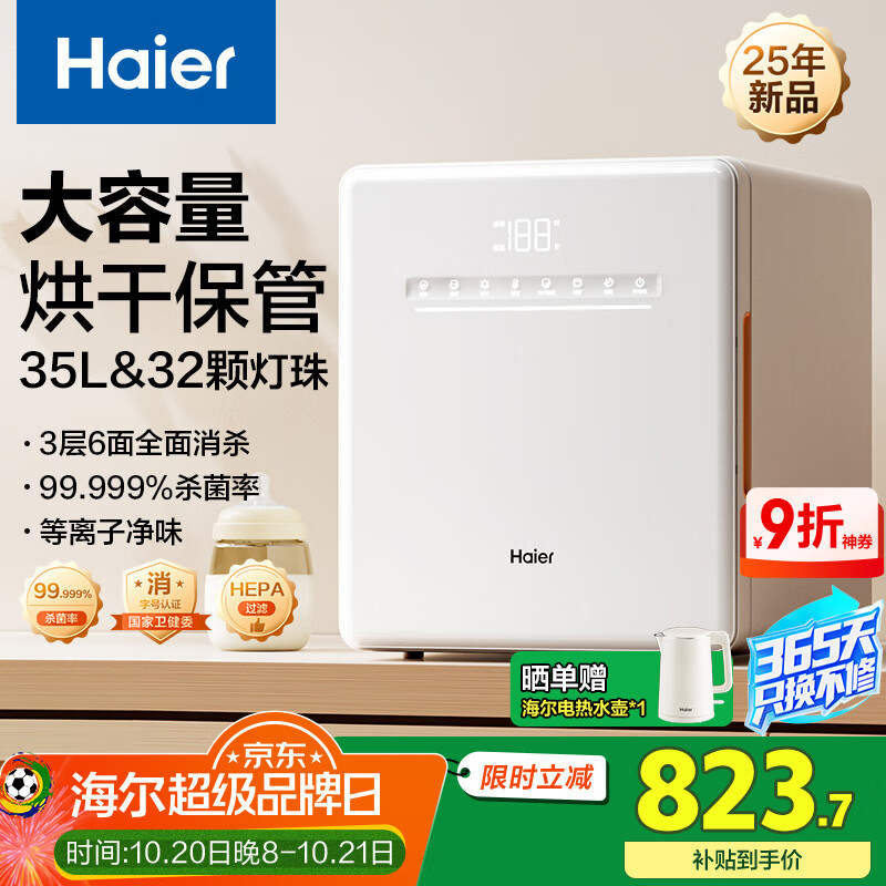 海尔(Haier)消毒柜婴儿35L奶瓶消毒柜器紫外线带烘干杀菌32颗灯珠等离子净味