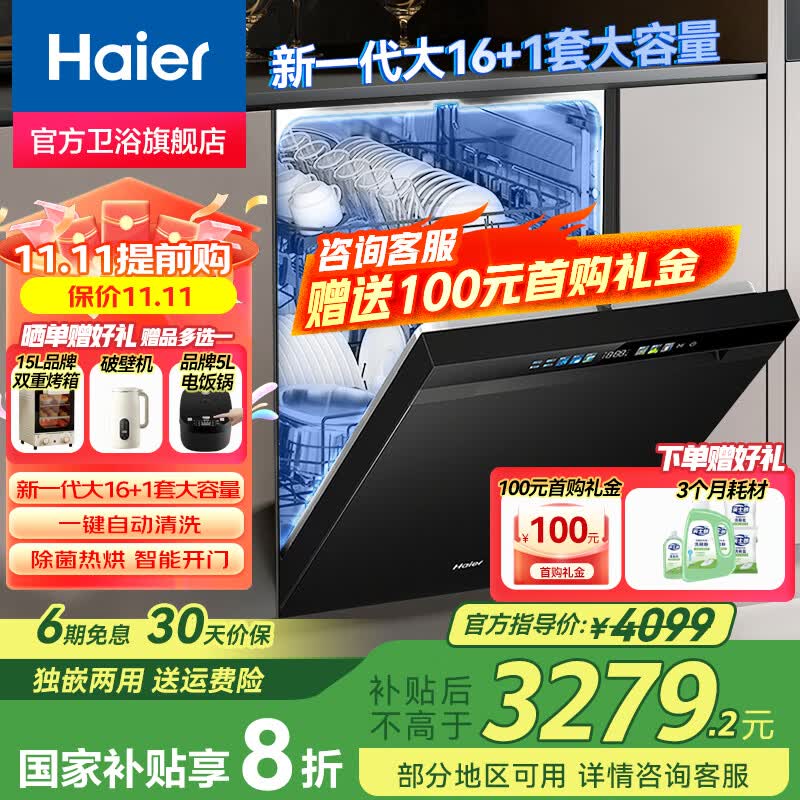 海尔(Haier)洗碗机嵌入式台式洗碗机独立式非台上洗碗机家用全自动台面柜消毒一体机L5MAX大16套 L5MAX【16套大容量】智能互联/独嵌两用