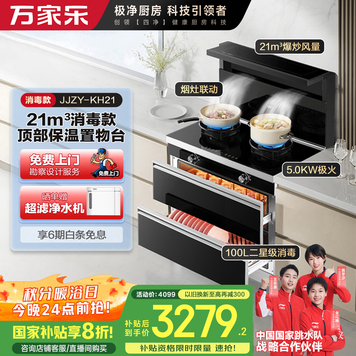 万家乐 二星消毒柜集成灶 21m³/min爆炒抽油烟机灶具套装一体灶自动清洗 烟灶联动JJZT-KH21天然气