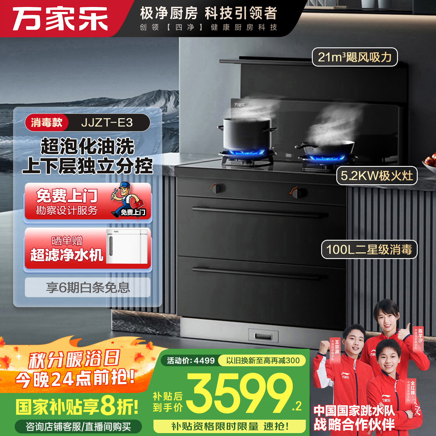 万家乐集成灶 100L臭氧紫外线杀菌高温消毒柜21立方烟灶联动超泡化油洗5.2kw大火力集成灶JJZT-E3天然气