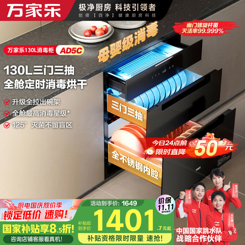 万家乐【AD5C·母婴消毒】嵌入式消毒柜130L容量三门三抽远红外线紫外线臭氧双重杀菌家用碗筷奶瓶消毒柜