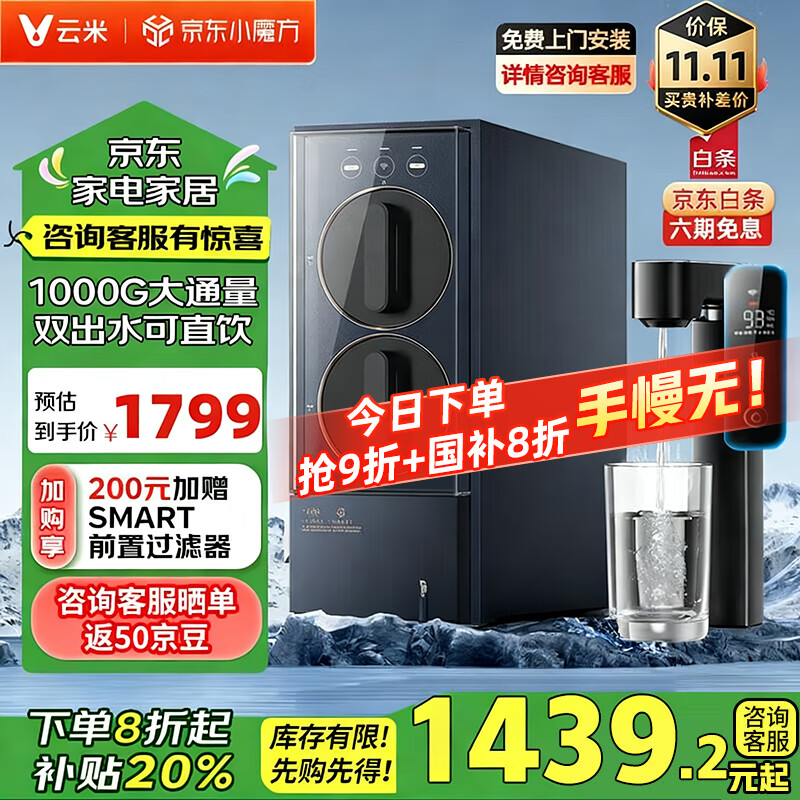 云米(VIOMI)加热净水器家用厨下鲜活即热过滤器饮水机大通量无阻垢剂1健加热6级过滤数显龙头Superpro1000G 即热1000G净水器
