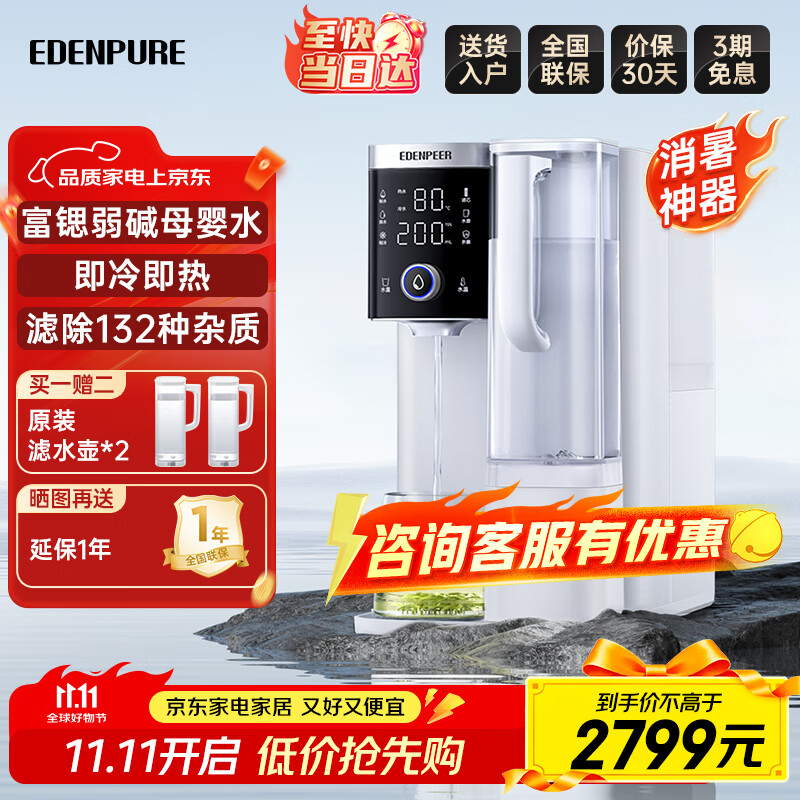 宜盾普净饮机台式净饮一体机家用即热式饮水机免安装净水器 冷热直饮水机RO反渗透净饮机富锶EDC-ZY4 Pro