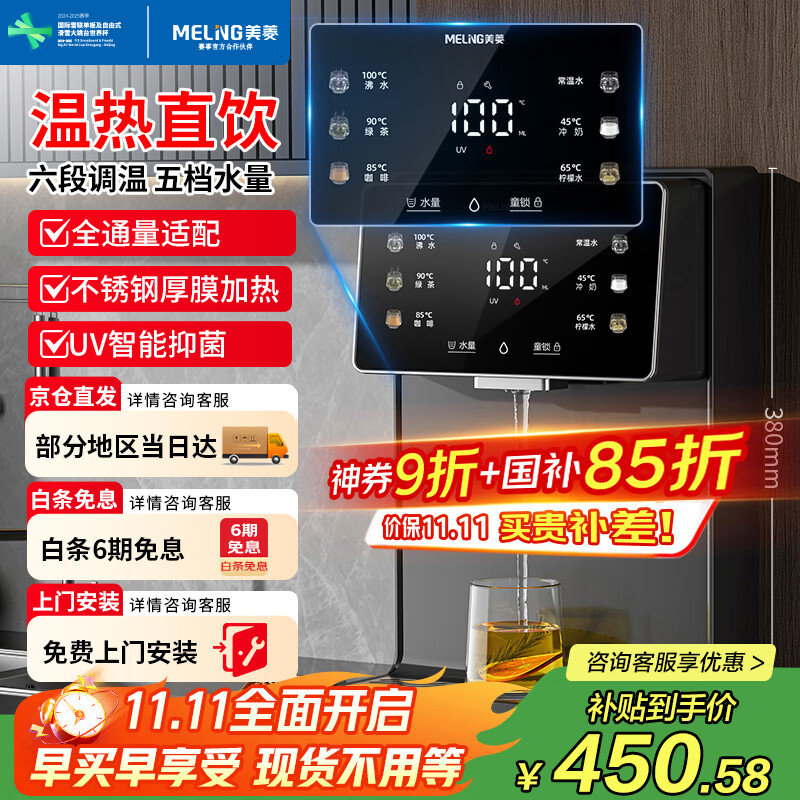 美菱(MeiLing)管线机壁挂式直饮水机台式加热一体机家用净水器伴侣全通量适配6档调温速热直饮机MY-GB9005