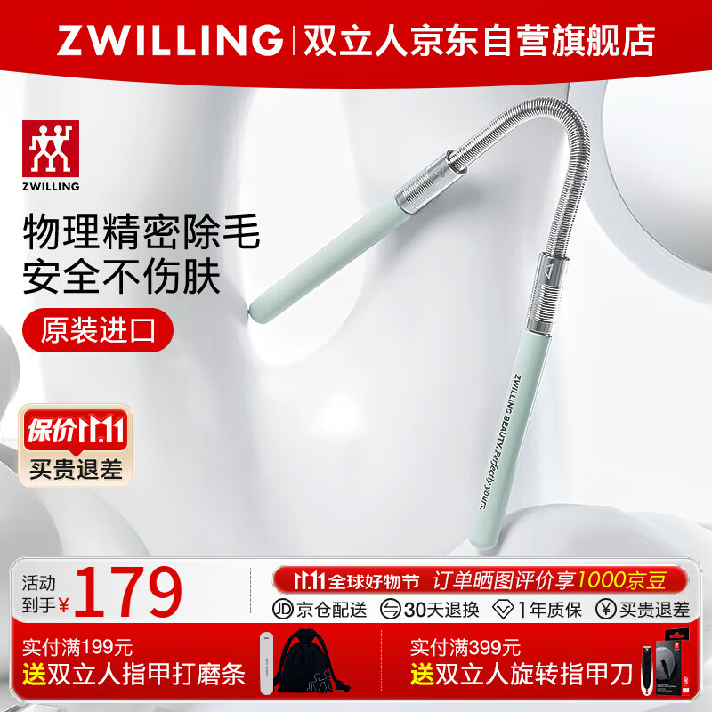 双立人(ZWILLING)脸部脱毛器不锈钢弹簧面部除毛器拔毛挽面器粘汗毛唇毛送女友德国