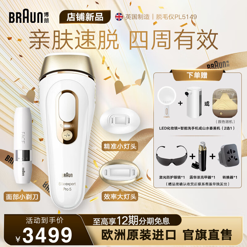 博朗(BRAUN)脱毛仪Pro5刮毛刀原装进口脉冲光家用脱毛器全身腋下唇毛腋毛腿毛私处男士剃毛器美容院 PL5149