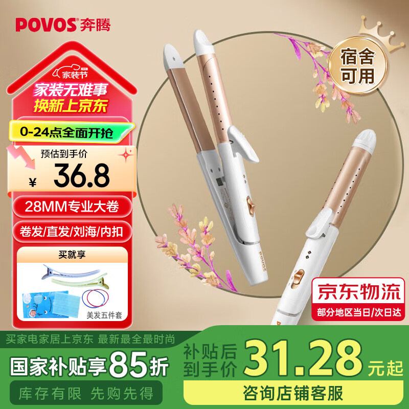 【自营】奔腾(POVOS)卷发棒卷直发器两用卷发器直发器迷你夹板刘海烫发美发电卷棒PR5073生日节日送女友