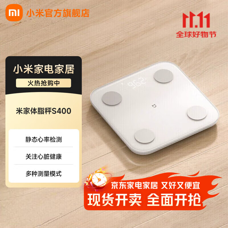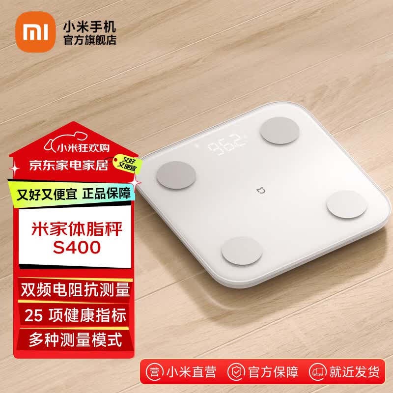 小米米家智能体脂秤S400 智能电子秤双频电阻抗测量 心率检测 25项健康指标 家用体重秤高精准塑形减脂 米家体脂秤S400