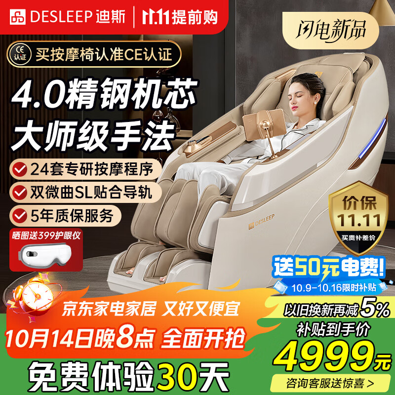 迪斯(Desleep)美国4D机芯按摩椅家用全身太空舱多功能电动按摩沙发椅子十大品牌 DE-A80L 生日礼物推荐送父母