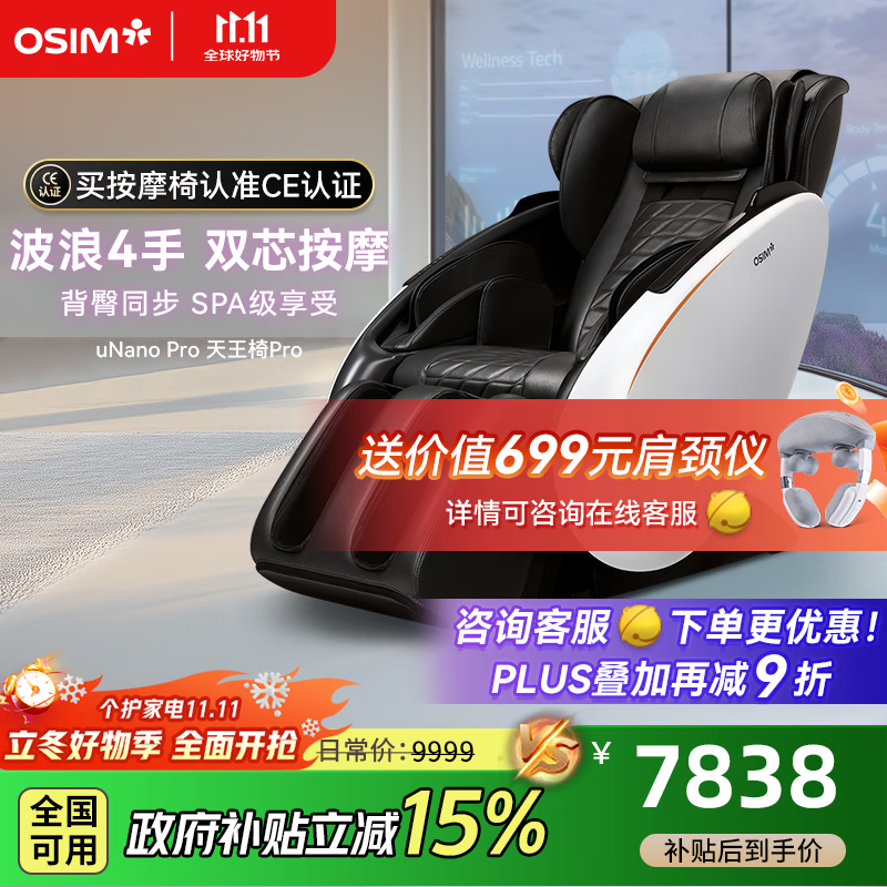 傲胜(OSIM)【政府补贴15%】按摩椅太空舱全身颈椎多功能零重力天王椅 OS-8220