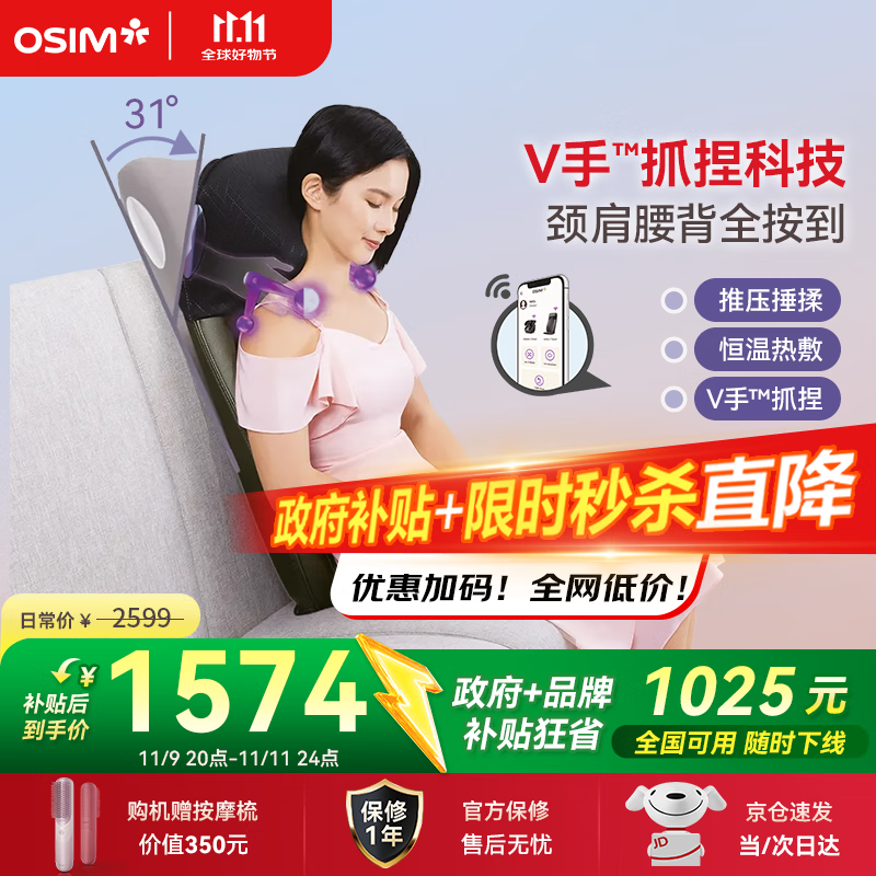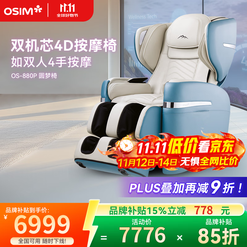 百亿补贴:傲胜(OSIM)【国家补贴】按摩椅V3 AI舒压椅养身科技全身多功能揉捏 V手4手按摩椅OS-8242 父亲节礼物实用