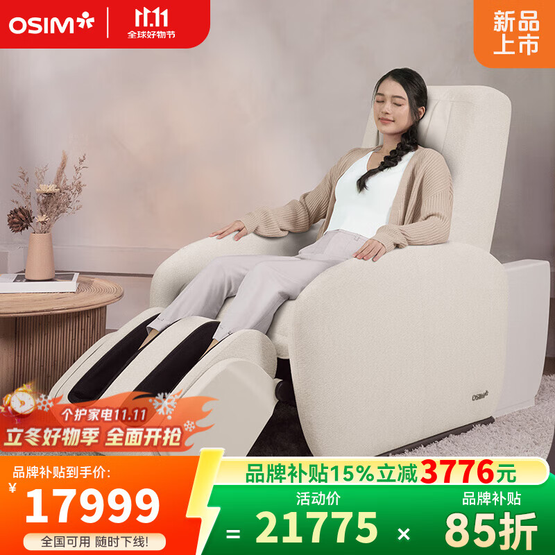 傲胜(OSIM)【政府补贴15%】按摩沙发椅家用多功能按摩百变天后Plus OS-8211P象牙白 生日礼物实用送父母