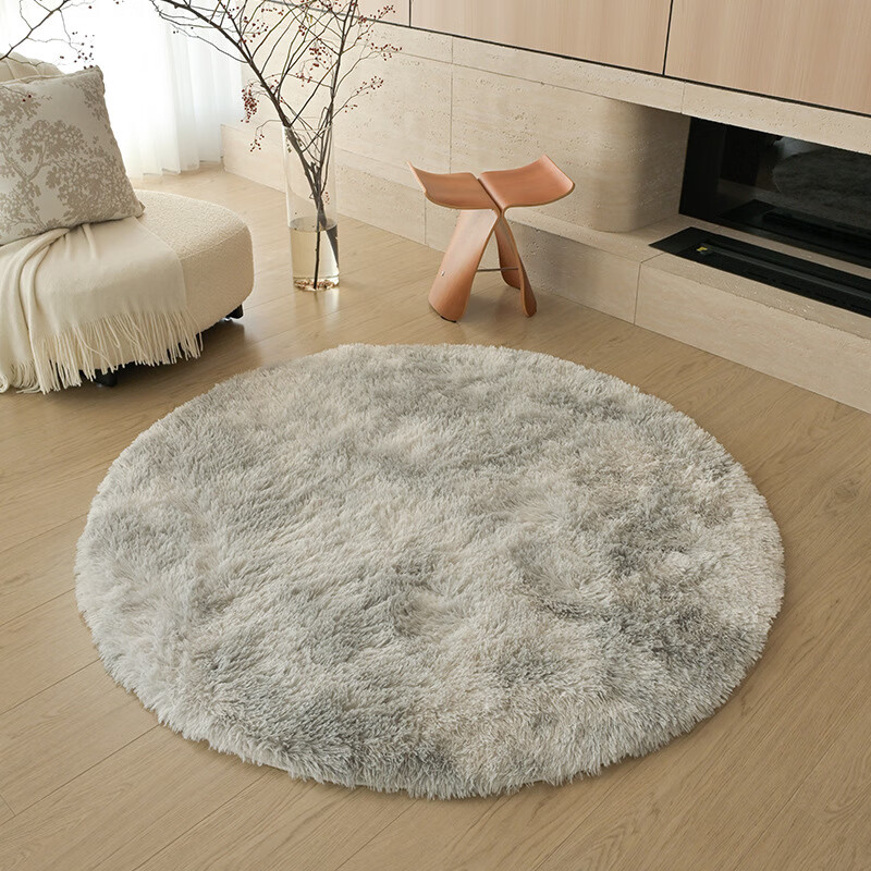 艾格辰圆形地毯长毛绒简约丝毛客厅书房电脑椅按摩椅脚垫家用卧室床边毯 扎染圆形-灰白色 直径80cm