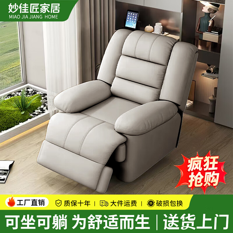 甄利头等太空懒人沙发舱单人电竞沙发椅电动按摩功能可躺睡美甲摇摇椅 【旗舰同款】浅灰硅胶猫抓皮 手动坐躺