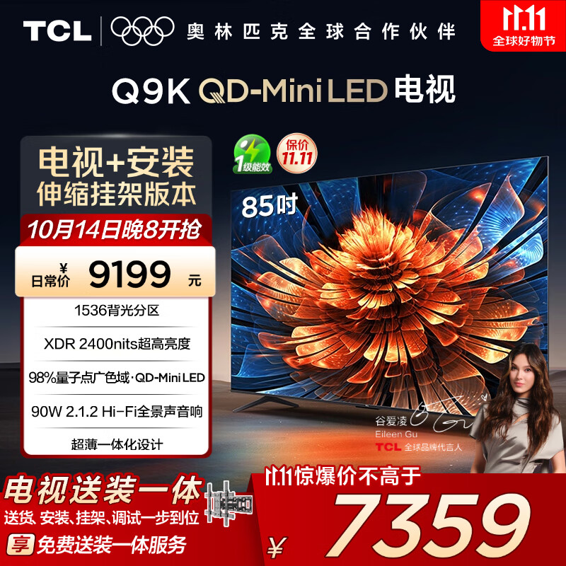 百亿补贴:75英寸 75Q9M枪色 官方标配 TCL 75Q9M RGB-Mini LED电视