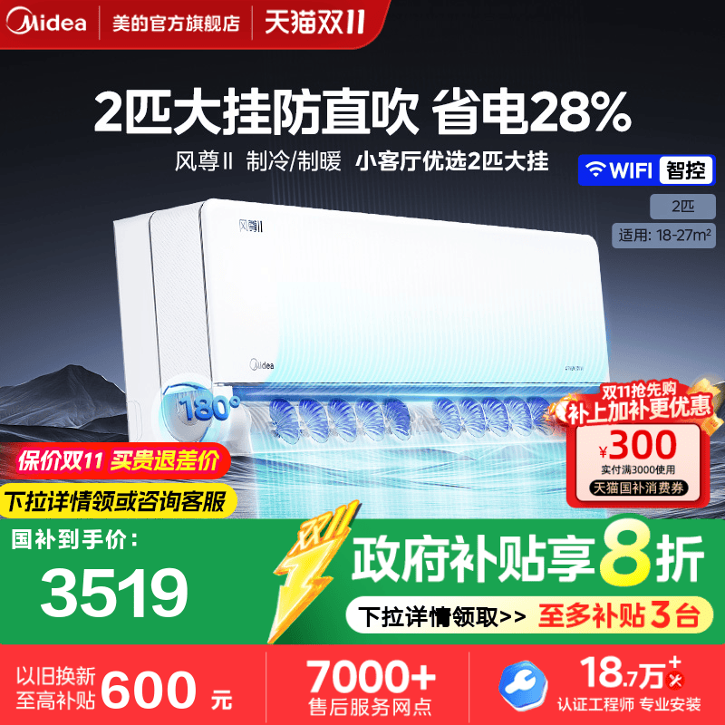 美的风尊二代空调小2匹一级变频冷暖家用官方正品大卧室挂机