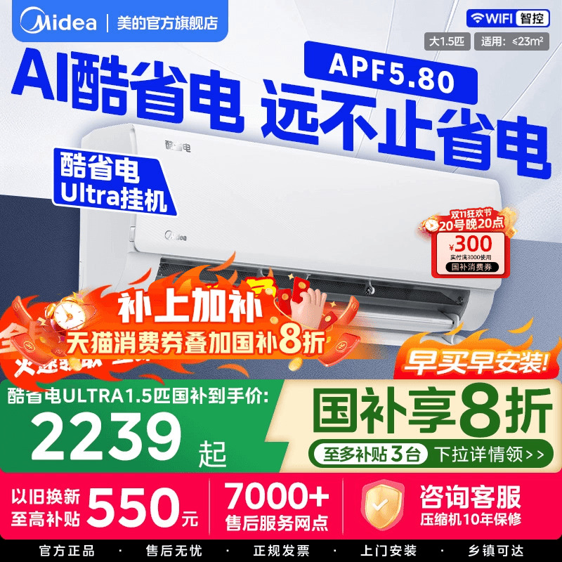 美的新品空调酷省电Ultra新一级节能大1.5匹卧室变频冷暖挂机官方 大1.5匹酷省电ultra 省电46%