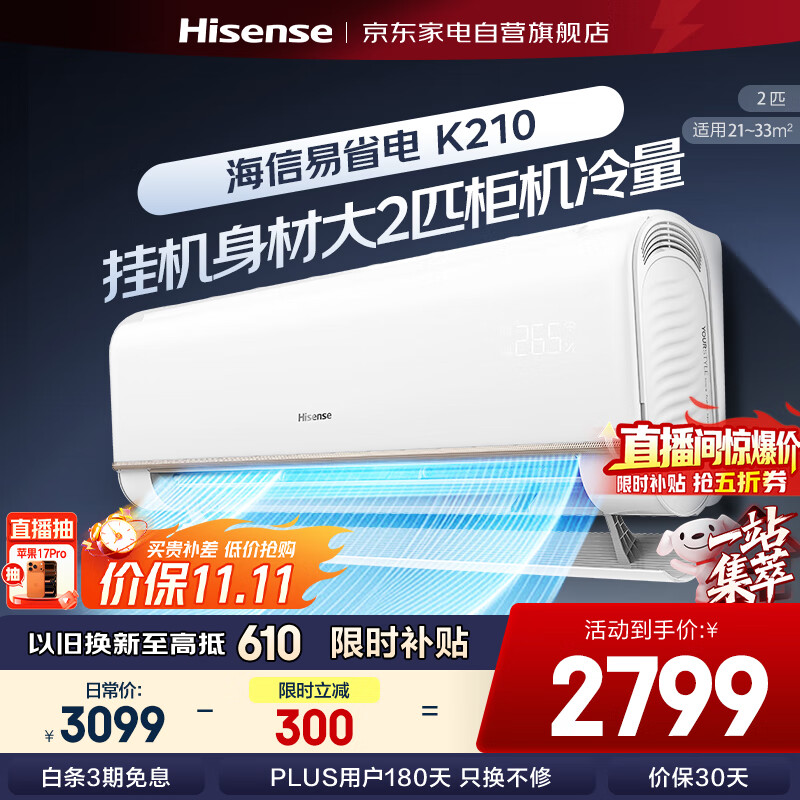 海信(Hisense)空调2匹挂机 易省电 AI省电大风量 新一级能效变频冷暖 空调挂机KFR-50GW/K210D-A1(G)