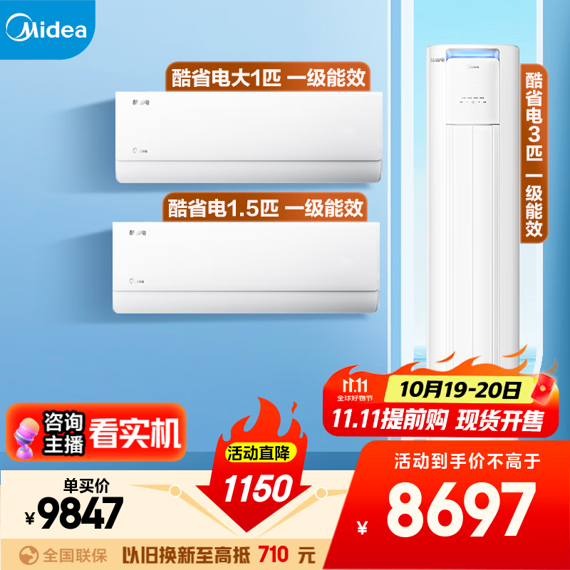 美的空调套装 一套购齐 酷省电新一级能效 变频冷暖 家用节能省电 国家补贴 卧室挂机+客厅立式柜机 酷省电两室一厅
