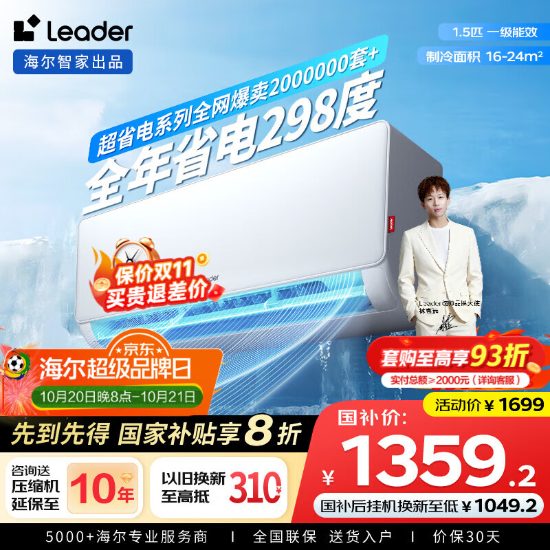 统帅(Leader)空调海尔智家出品 超省电超一级能效1.5匹1匹变频冷暖空调挂机 超省电max空调 以旧换新国家补贴 1.5匹 一级能效 【升级AI省电】超省电 35LA1