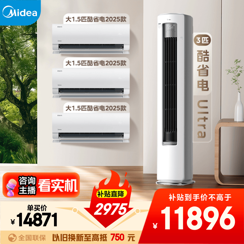 美的(Midea)空调套装 酷省电新款系列 挂机立式柜机新一级能效变频冷暖 家用节能套装 一套购齐 家电国家补贴 酷省电2025款+酷省电Ultra(三室一厅)