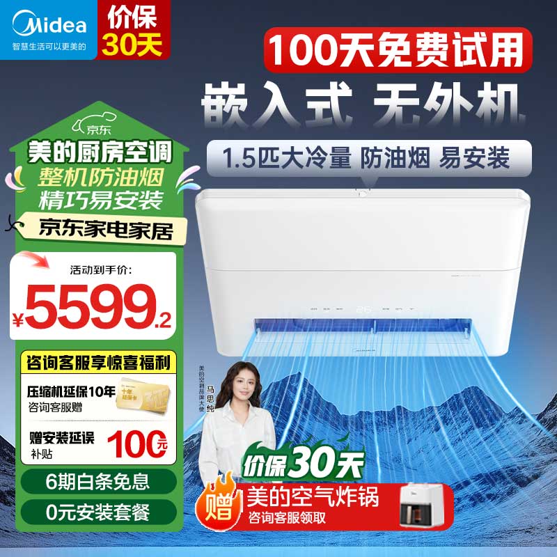 美的(Midea)大1.5匹 厨房空调 小凉方 嵌入式 变频一级能效节能省电 厨房专用空调 家用集成吊顶制冷 大1.5匹 套装 无外机厨房空调