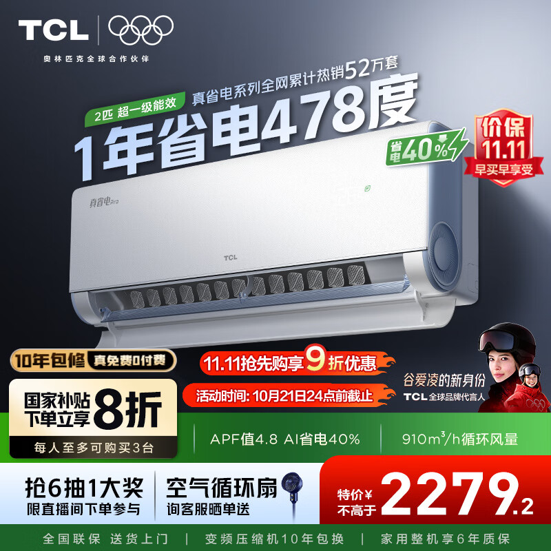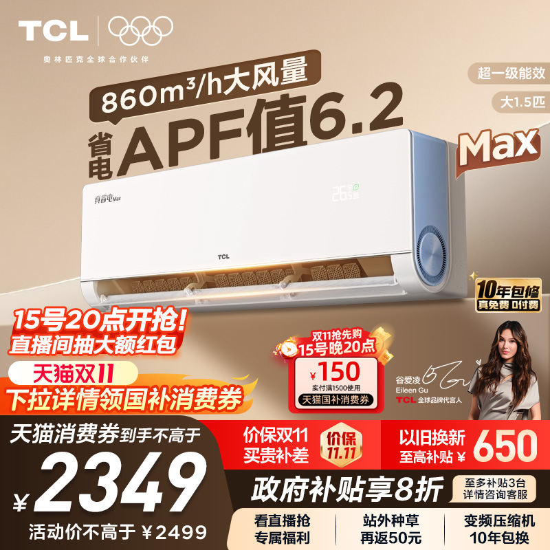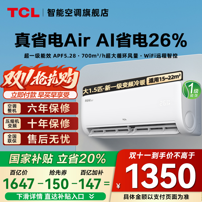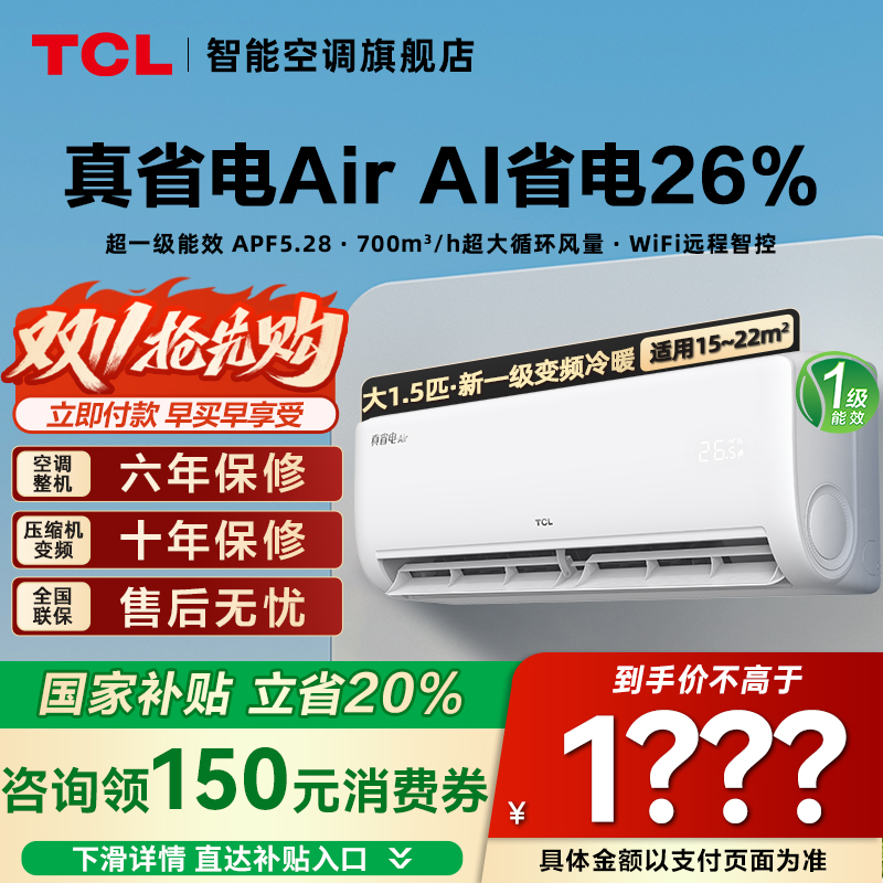 政府补贴TCL空调大1.5匹真省电air挂机1级能效冷暖家用官方旗舰店