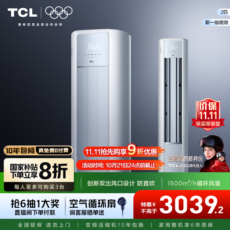 TCL空调柜机 新一级能效 真省电SE柜机 节能省电空调冷暖 客厅立式空调 双出风口 国家补贴20%空调 2匹 一级能效 真省电SE柜机