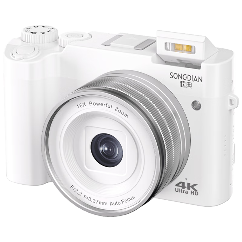 松典DC218 入门级前后双摄高清数码相机学生自拍vlog可传手机ccd平替高中生旅游专用微单4K国产照相机 白色 官方标配+32G内存【约存3千张照片】