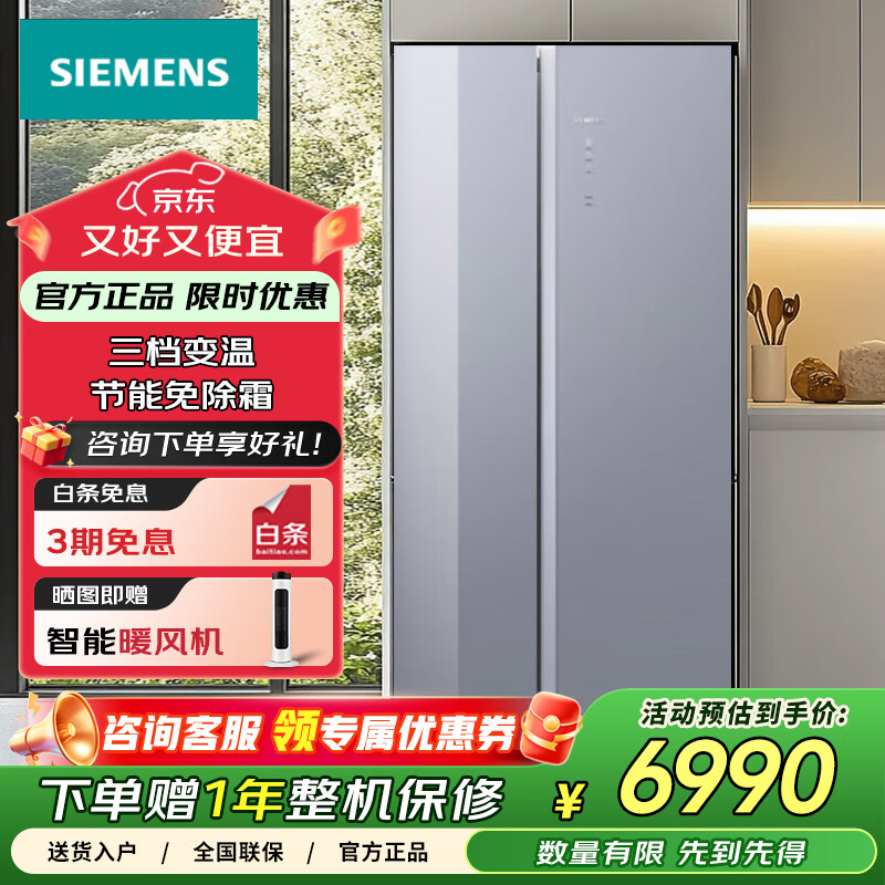 百亿补贴:白色 西门子双循环KM48EA20TI冰箱484L