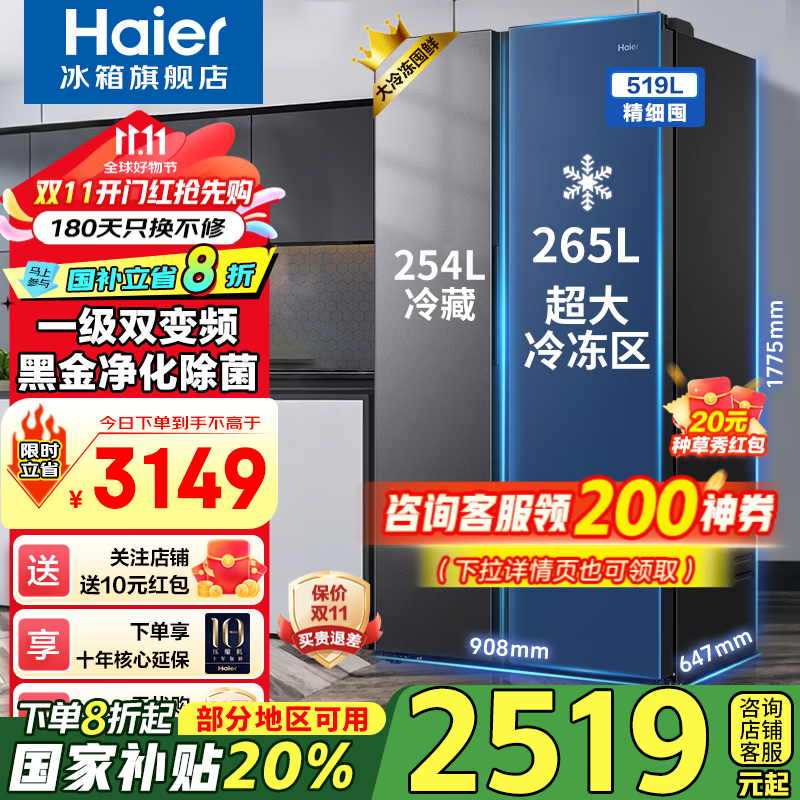 海尔(Haier)出品统帅双系统双循环双蒸发器冰箱十字门对开门一级能效风冷无霜ALP超净家用冰箱575换新补贴20% 智控双系统双循环+ALP超净5效合一+三挡变温