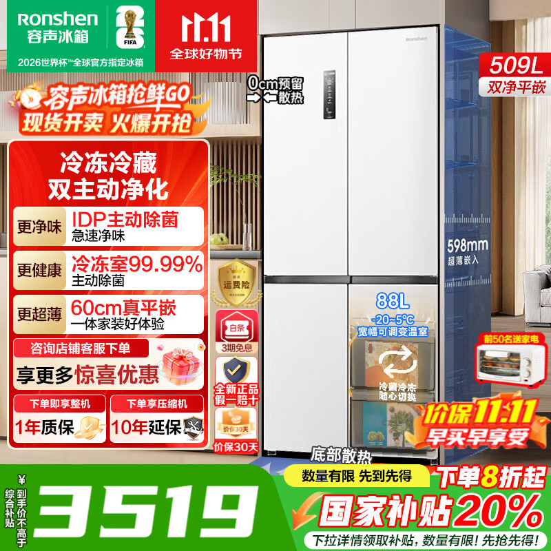 Ronshen/容声 BCD- 519WD19MP 519升 冰箱 法式多门