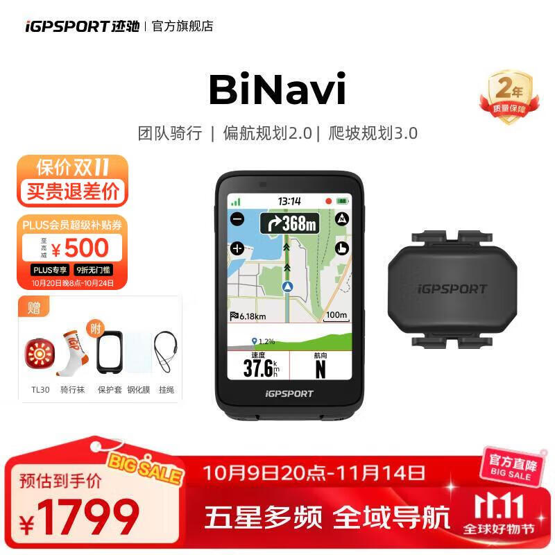 iGPSPORT迹驰 BiNavi自行车码表公路车GPS导航智能无线骑行赛段爬坡码表 BiNavi码表+踏频