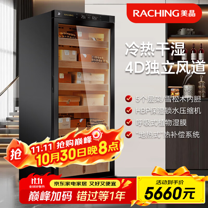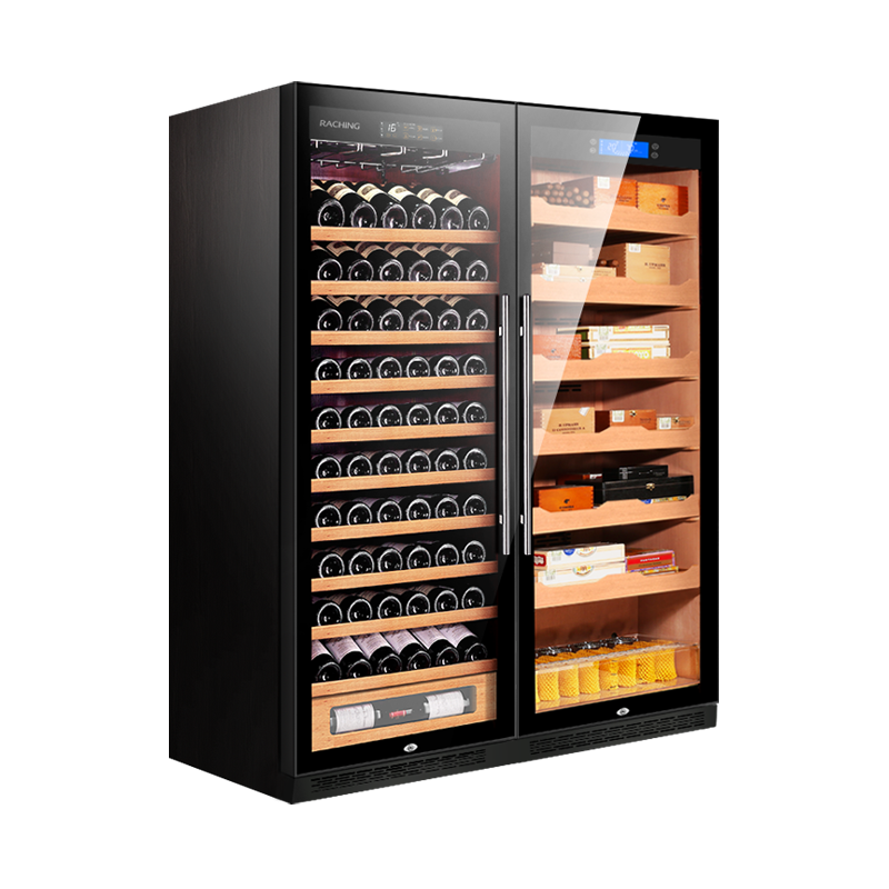 美晶(raching)CS600 实木双开门红酒雪茄两用恒温柜智能恒温红酒柜恒温恒湿雪茄柜定制柜 黑胡桃(红酒柜雪茄柜组合)