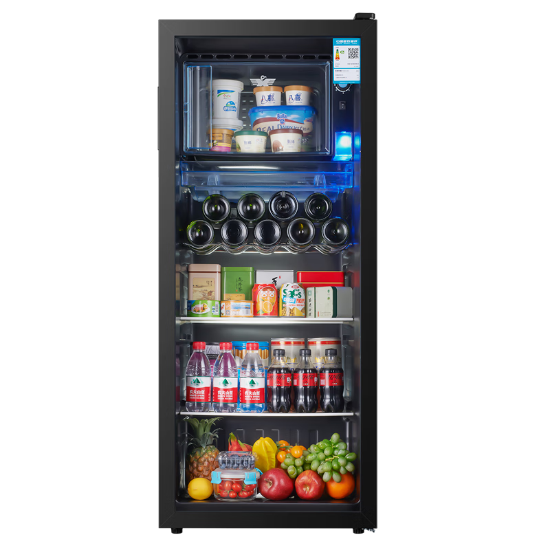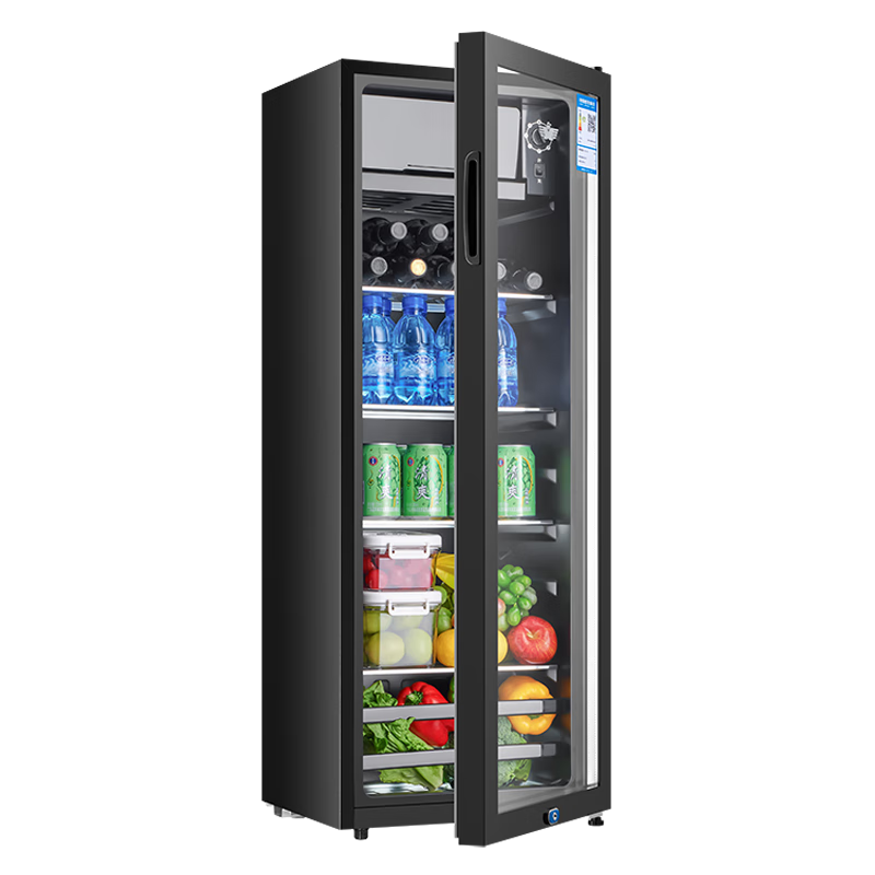 新飞232升冰吧酒柜办公室饮料茶叶柜 家用单门冷藏电冰箱 保鲜展示柜 232升黑内胆【冷藏+23升微冷冻+带灯带锁】