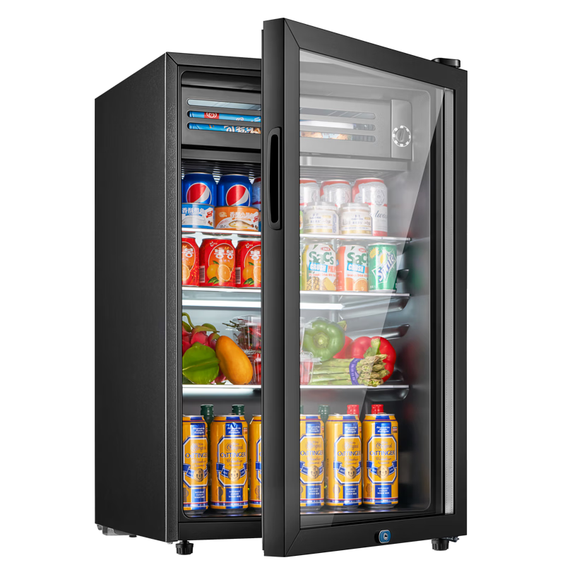 新飞(frestec)冰吧冷藏柜保鲜柜 欧式恒温红酒柜酒店家用客厅冰箱迷你小型单门办公室保鲜展示留样茶叶饮料柜 90升黑内胆【冷藏+微冷冻+带灯+带锁】