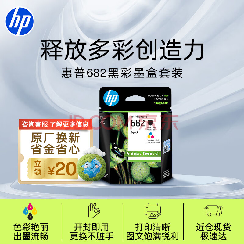 惠普(HP)682原装黑彩套装墨盒 适用hp 2336/2775/2776/2777/2778/2779/4175/4178/6078/6478打印机