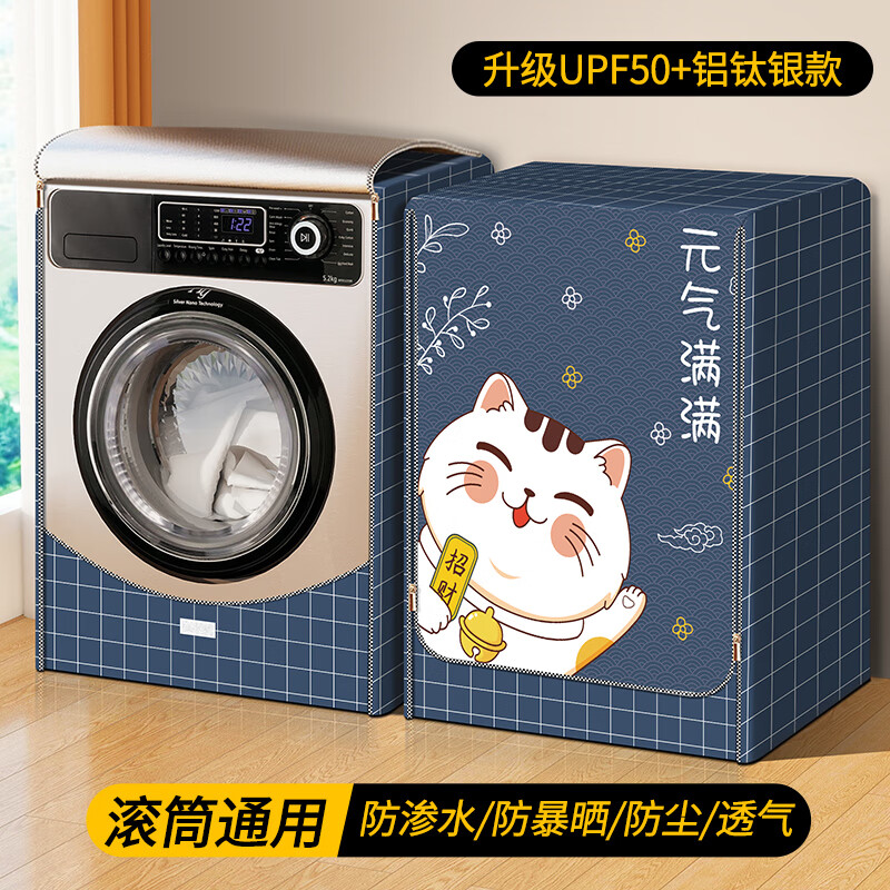 百菲滚筒全自动洗衣机罩防水防晒防尘套适西门子海尔小天鹅lg三洋小米 元气满满【粘贴拉链两用】 加大码-XL(10-12公斤)