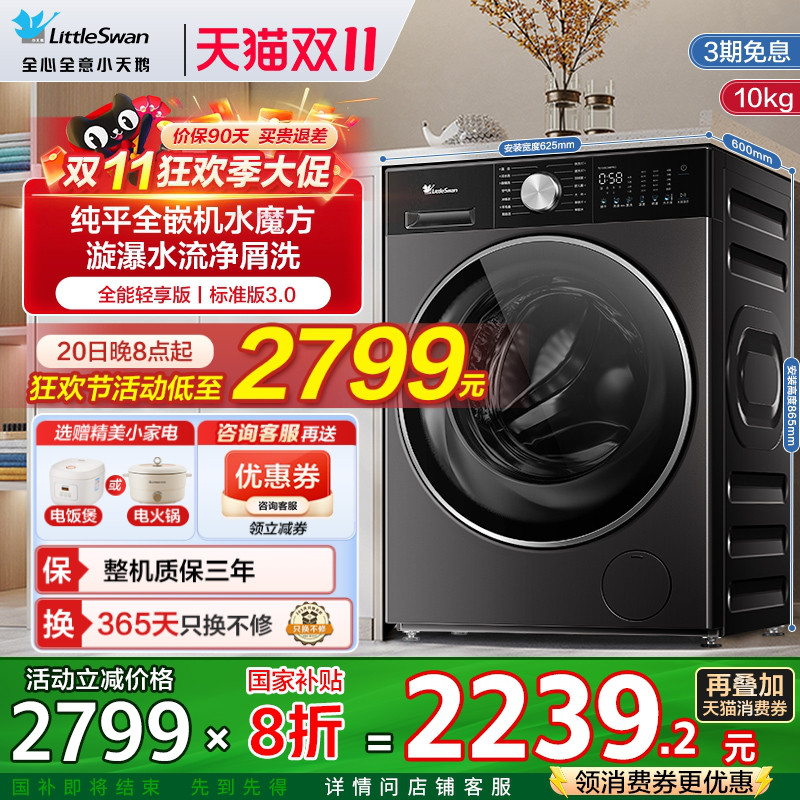 小天鹅(LittleSwan)滚筒洗衣机全自动国家补贴 小乌梅3.0/小钢炮 单洗/洗烘一体 10/12公 斤超薄全嵌水魔方 以旧换新 【小乌梅3.0E10同款-无烘干】水魔方漩瀑水流