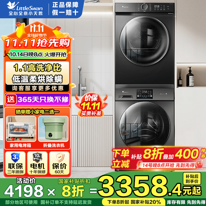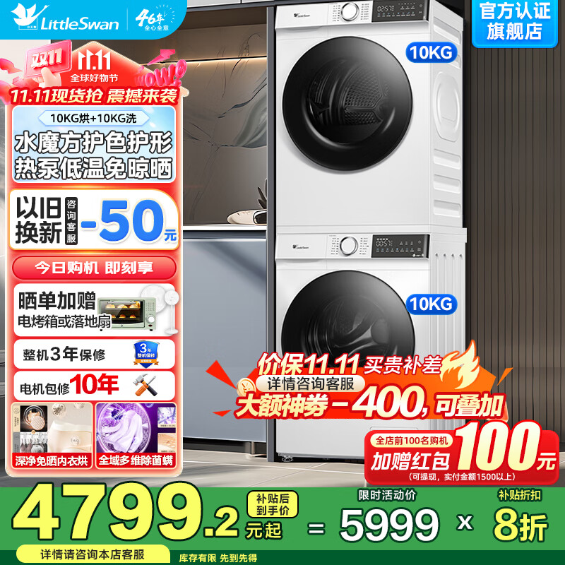 小天鹅(LittleSwan)洗烘套装 全自动滚筒洗衣机国家补贴+热泵烘干衣机 10公斤洗烘一体机组合 除菌除螨 以旧换新 【店铺推荐款】V23PRO+VH02T 多重除菌