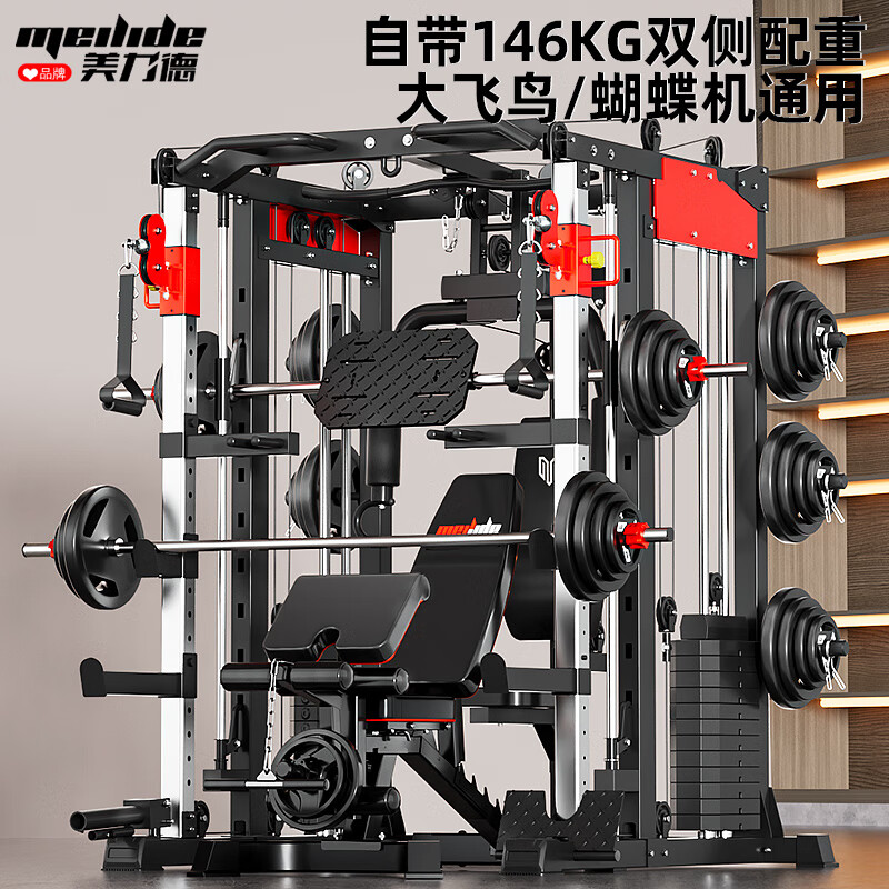 美力德龙门架综合训练器史密斯机家用健身器材多功能一体机飞鸟深蹲卧推 专业版【卧推凳+奥杆+150kg铃片】