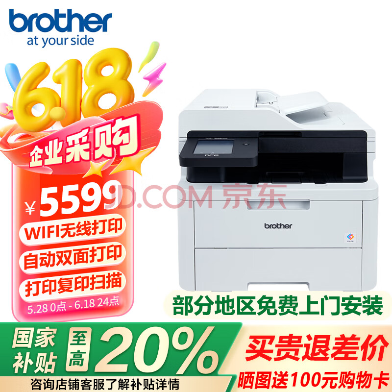 兄弟(brother)DCP-L3568CDW A4彩色激光多功能一体机 自动双面打印/复印/扫描三合一 wifi无线手机打印