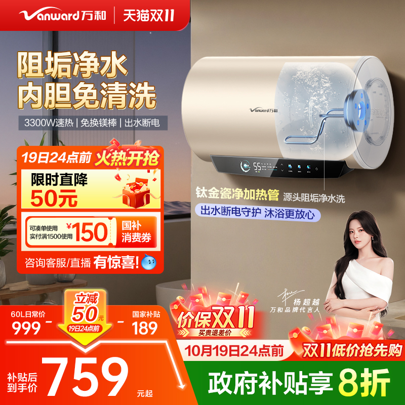 [政府补贴]万和电热水器Q2Ultra出水断电洗澡家用一级能效速热Q8