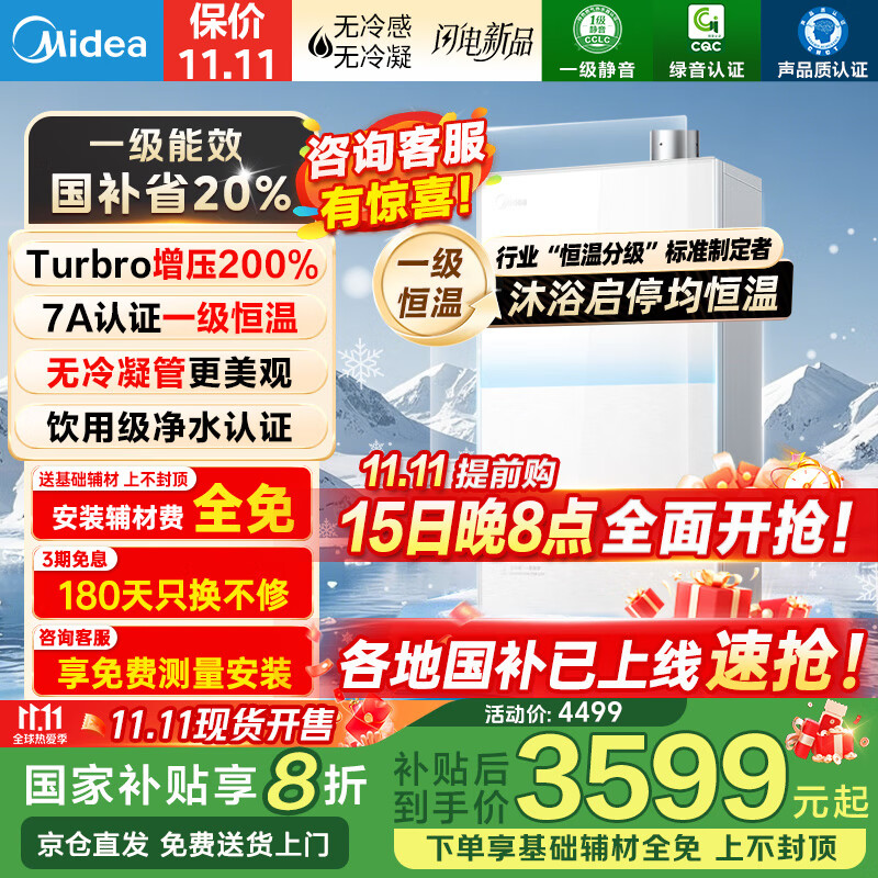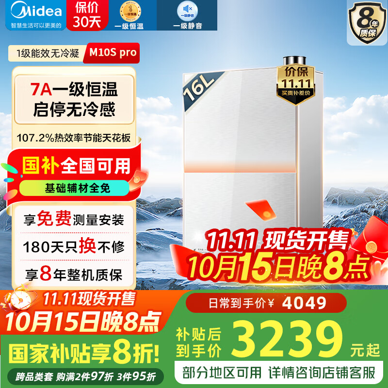 美的(Midea)【安睡M10Smax系列】16升燃气热水器天然气【增压无冷感7A一级恒温安睡一级静音】国家补贴立减20% 16L 超静音M10S Pro | 节能天花板