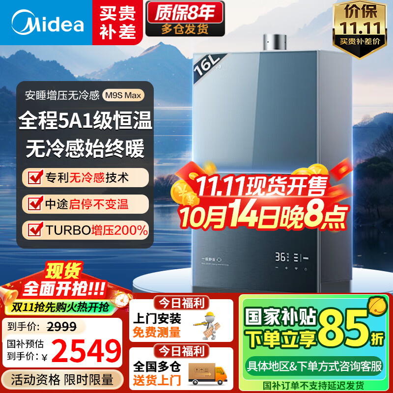 美的(Midea)16升燃气热水器安睡M9max/M9Smax系列天然气静音 零循环 下置风机增压恒温国家补贴立减 16L 无冷感-M9S MAX年度爆款