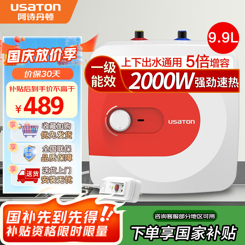 阿诗丹顿(USATON)9.9升小厨宝厨房储水电热水器约10升L一级能效2000W上出水下出水国家补贴 KX06-9.9J20