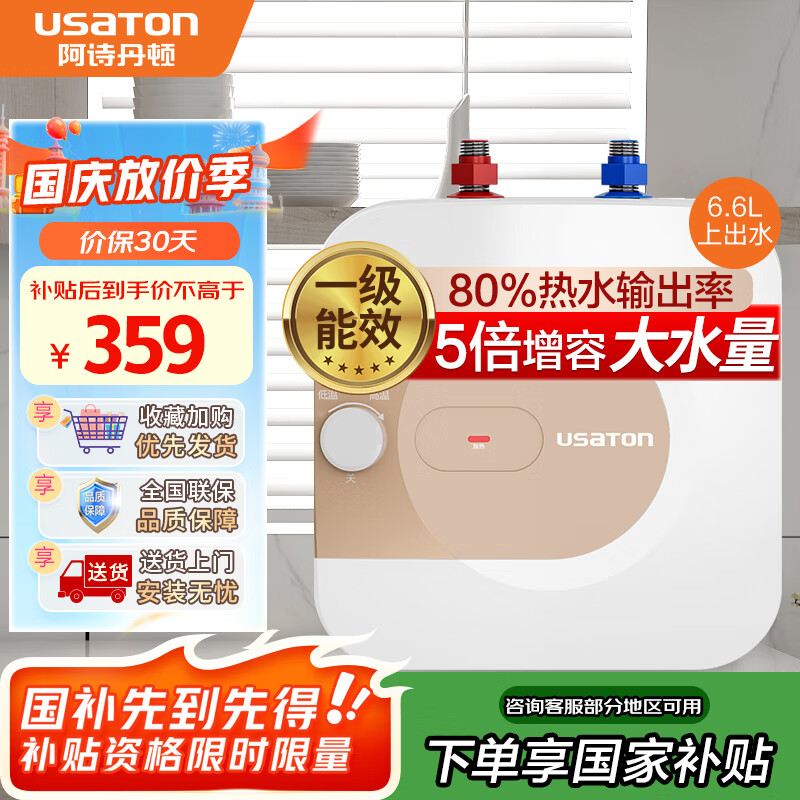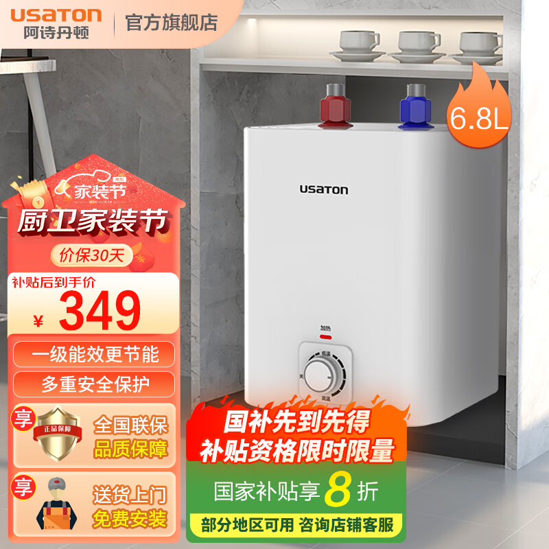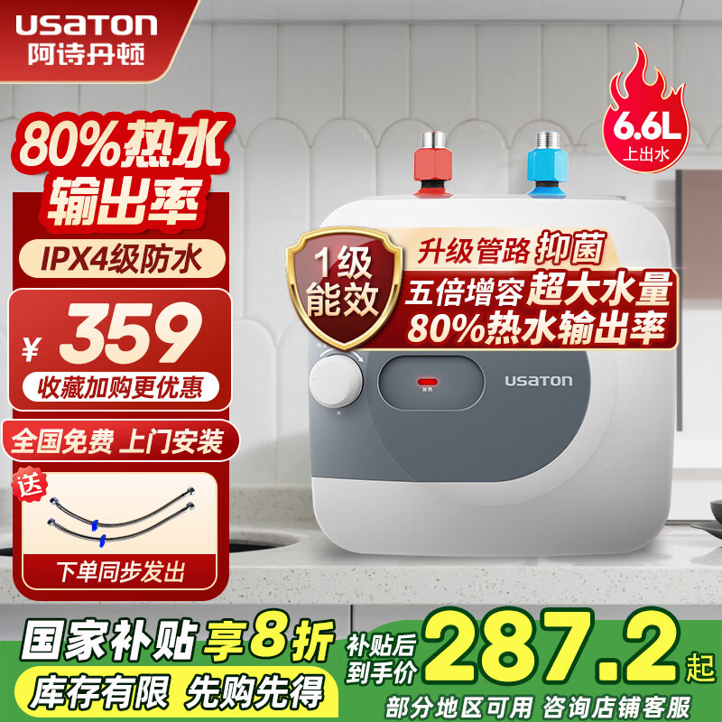 阿诗丹顿(USATON)小厨宝电热水器速热式暖热水宝厨房热水器迷你储水式上出水10升一级能效 6.6L 1500W 【上出水6.6升】一级能效 小厨宝