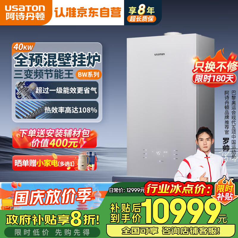阿诗丹顿(USATON)全预混超一级能效三变频冷凝式燃气壁挂炉天然气供暖炉家用热水器地暖暖气片LL1GBQ40-BW