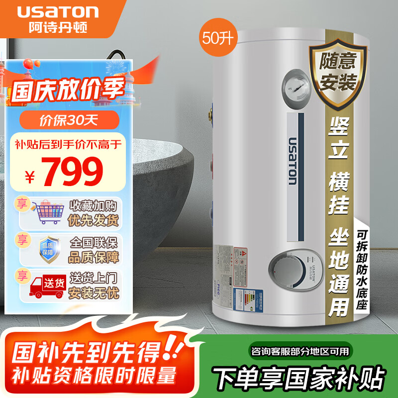 阿诗丹顿(USATON)50升电热水器坐地式竖式落地式可拆卸防水底座速热储水式立式热水器 DSZF-C50J20M