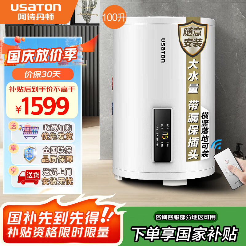 阿诗丹顿(USATON)100升立式电热水器落地式竖挂式2000W热水器储水式家用洗澡节能国家补贴 KC51-W100D20